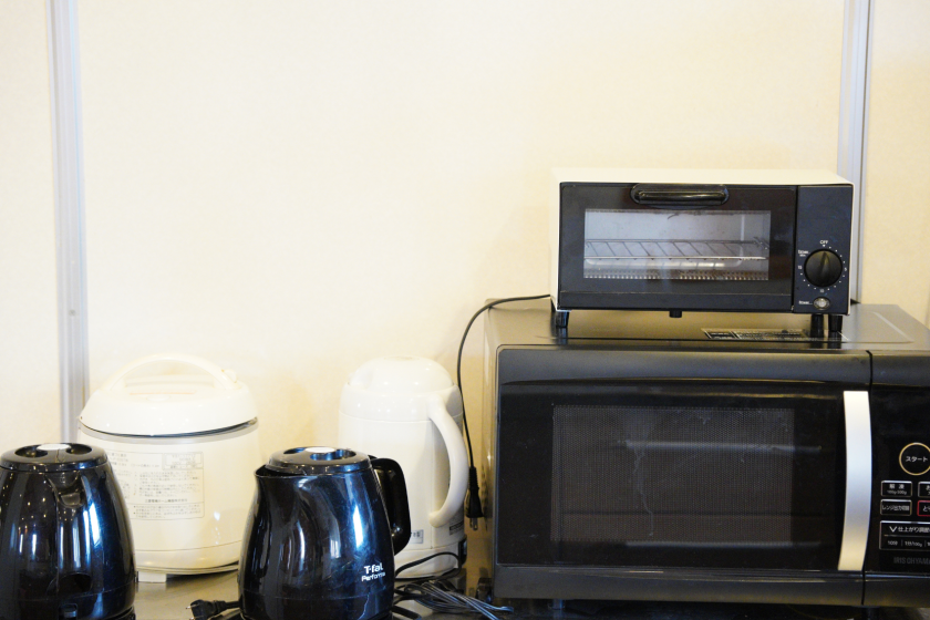 コワーキングスペース、シェアキッチン(共有|冷蔵庫、調理器具、IHコンロ、食器)、男女別シャワールーム(シャンプー、コンディショナー、ボディソープ、ドライヤー完備)